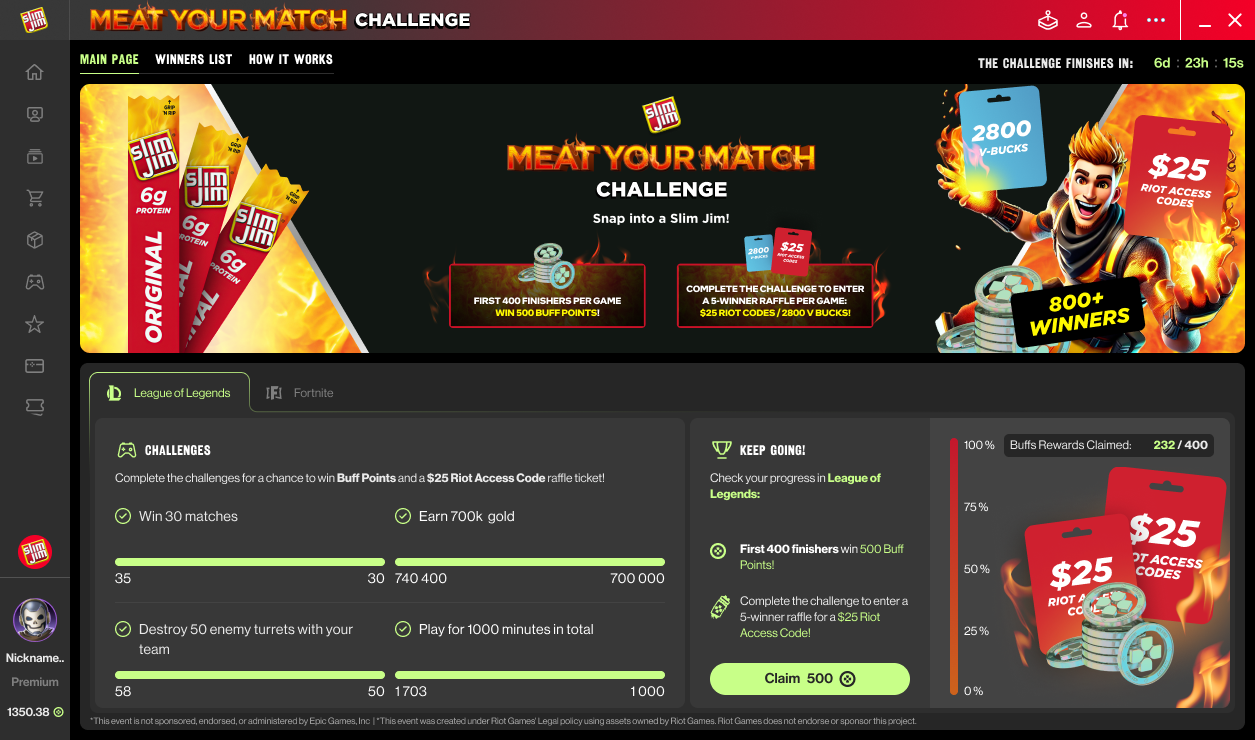 You can win rewards by completing all challenges in League of Legends and Fortnite. Here’s how the rewards will be distributed:
